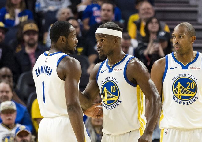 首先美媒统计,自从上赛季巴特勒来到球队,当他和库里同时出战时,勇士战绩29胜6负,胜率高达83%,同期净效率值也只有雷霆能媲美!其次,当勇士同时摆上巴特勒+库里+格林+库明加这套四人组合时,百回合净胜对手28.1分,在所有出场超过40分钟以上的组合里,高居联盟第一。再退一步,当这四人组加上博斯特,勇士百回合赢对手34.9分;换成波杰姆斯基,百回合赢对手24.5分,所有出场超过20分钟的首发组合,勇士净效率还是联盟第一。这属实有点强了,那有一个问题,谁是勇士兜底下限的保障?